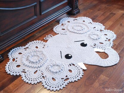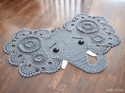 Elephants are the cutest animals ever! Their curved trunks remind me of hooks and inspire me to crochet. The combination of texture, lace and chunkiness makes this rug a conversation piece, which will bring your home to life. Let your creativity shine and make the ears one of a kind by changing colors frequently in any round you like. This is a great project for using up your yarn leftovers. The pattern is for a solid color elephant rug, written row-by-row using US crochet terms. It also includes crochet diagrams, step-by-step photos, and a conversion chart to UK terms. I hope you will enjoy making your Josefina and Jeffery from this pattern as much as I enjoyed designing it.