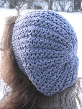 A slouchy tam featuring a deceptively simple lace and rib stitch. Josie is available is 3 sizes, to fit head circumferences of 21, 22, or 23”.