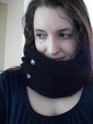 This buttony cowl is a fun twist on a new knitter’s first project: the beginner’s scarf. Inspired by the very first project of a knitting newbie, this snuggly neck warmer is soft and luxurious!