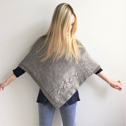 For my lovely sister Julie, aka Jules - a warm, chunky, poncho to wrap up in for that walk by the sea. Moss stitch (USA seed stitch) edges, garter stitch body and a zigzag stitch pattern all come together for a cosy and fashionable knit.