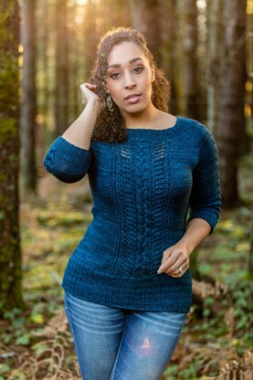 Julissa est un pull raglan moderne, tricoté sans coutures de haut en bas avec un fil de grosseur worsted. Une encolure large, des détails marquants en torsades et en dentelle, des manches trois-quarts ou longues (au choix !) et un léger cintrage à la taille s’associent pour créer un haut féminin, à la fois facile et agréable à tricoter. Des rangs raccourcis sont utilisés pour abaisser l’encolure devant et offrir un ajustement confortable. Des instructions sont également incluses pour ajouter des pinces au niveau de la poitrine si nécessaire. Portez ce joli pull ajusté avec votre jean préféré et un t-shirt ou un débardeur assorti en dessous.