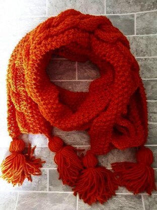 Hand knit gorgeously over sized scarf in a stunning burnt orange yarn.