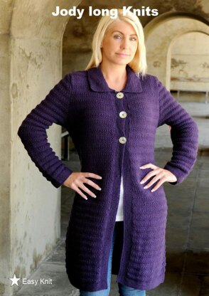 Easy simpe jacket to knit, using stocking stitch and moss stitch to create an interesting pattern to knit.