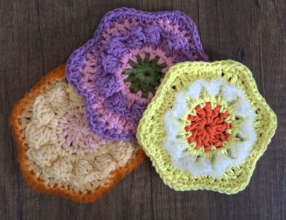 This pattern embraces the wonderful play of Universal Yarn Clean Cotton with Lion Brand Yarns Stitch Soak Scrub. Three-dimensional post stitches add texture, and with three options for adding scrubby yarn, the cleaning power blooms. With the numerous vibrant colors available in Clean Cotton and Stitch Soak Scrub, this allows you to explore endless combinations to create your own unique bouquet of dishcloths.