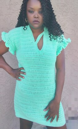 A dress that is unique, comfy, & colorful is sure to turn heads. Made with simple dc stitches throughout, this will be an easy project to whip up in a day. The ruffled sleeves & center cutout, gives this dress just the right amount of sassiness.