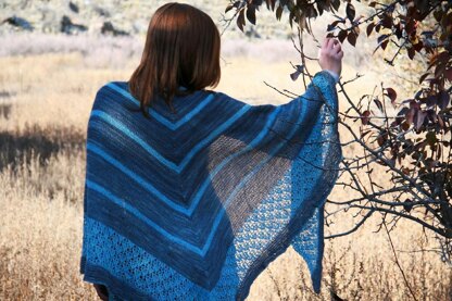 For those times when life just hits you out of nowhere and the grey skies seem to overwhelm the hope of tomorrow. This over-sized, triangular shawl is the perfect hug that you can wrap yourself up in when you just need to be held. The body of the shawl is knit in stockinette, with easy color changes for the stripe pattern, and the border is knit in a simple lace pattern.