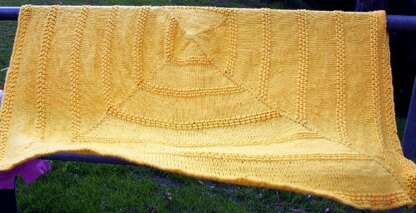 The yellow blanket is knit using Knit Picks Brava Worsted in Canary colorway. This blanket was knit by Charlene