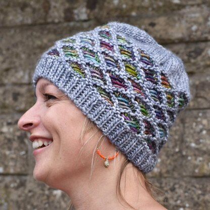 This hat is worked in the round using two contrasting shades of yarn. It's designed in Malabrigo Mecha and is a quick knit.