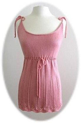 This is a tank top with a wonderful lace pattern at the bottom edge that creates its own scallops. Then the pattern is turned into an easy striped lace pattern which goes up to the bust. The neck area is decorated with applied I-cords and the shoulders are joined with I-cords. There is also a cord underneath the bust to create a more fitted look.