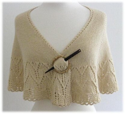This shawl is worked from neck down and is designed to have three corners making it stay on the shoulders without falling off. It is worked in Stockinette stitch with increases at strategic points. Then a beautiful lace pattern is worked to create a lovely accessory to be worn anytime you feel a bit of a chill.