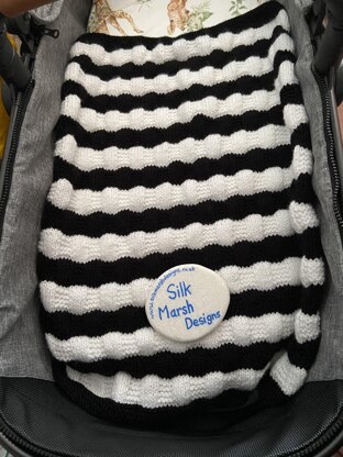 I have designed and knitted this baby blanket in black and white shades of King Cole Cherished DK, because research has proven that: