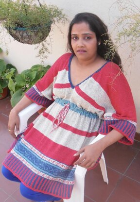 Knitting a kaftan dress was always on my to-do list and I finally got down to designing one in linen with a rather simple fair isle border. Kaftans are truly versatile garments. They can be worn on the beach as a cover up, indoors as part of a casual ensemble or as a fashion statement for evening parties and events. The kaftan is definitely unique and an essential addition to one’s closet! The nicest thing about a kaftan also is that it is an all-size kind of clothing and it flatters every body type!
