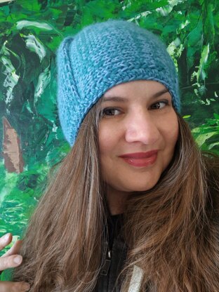 This beanie is knit all flat. There is no knitting in the round at all. Also, it is seamless.