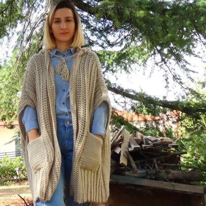 Kallisto Poncho Cardigan is a hooded loose poncho cardigan.