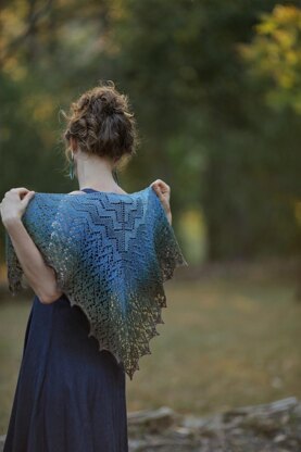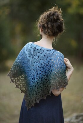 Karuna is a choose-your-own-adventure texture and lace triangle. The shawl begins with a zigzagging knit & purl pattern which transitions into one of Naomi Parkhurst’s elegant laces, which can be made to either ripple, echoing the zigzags of part 1, or to make flowing diamonds that echo the start of the shawl.