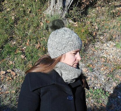 Kasbah cowl is part of the kasbah set, featuring a cowl, a hat, mittens and fingerless mitts.