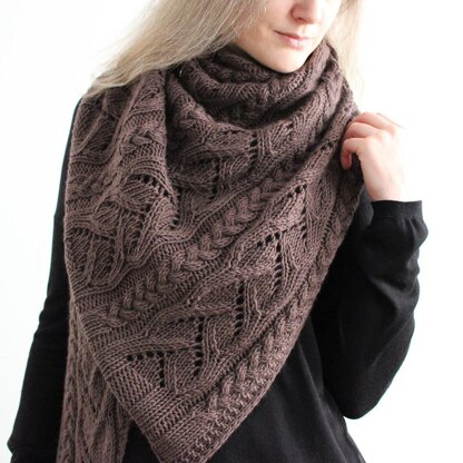 Kastanie (which means chestnut in German) is an eye-catching triangular shawl with a beautiful cable-lace motif. Worked sideways from one tip to the opposite edge makes this shawl fun to knit and easy to wear.