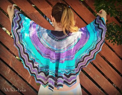 The name Katerina means “pure” in Russian, and this shawl was named for my friend with the same name, who has a pure heart and is a wonderful friend. The colours chosen for this design are also her favourites! This shawl is worked from the top down, using both varigated and semi solid yarns. The slip stitch pattern and edging give a textured look to this simple pattern.