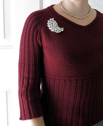 Perfect for pairing with retro wide-leg trousers and high-waisted skirts, the sleek Katrina Pullover will add some vintage drama to your wardrobe. Worked in one piece from the top down, Katrina features a slightly cropped body and flared elbow-length sleeves. Bust darts and a ribbed lower body create a very fitted shape worn with 2-3” of negative ease.