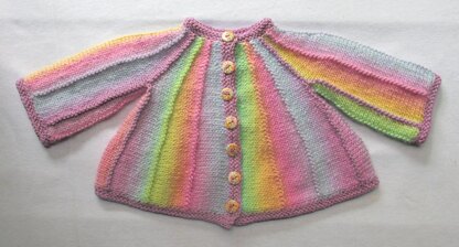 A little flared cardi with garter stitch bands worked sideways in one piece. Shaped using short rows and with hardly any sewing, this is a fast and fun knit.