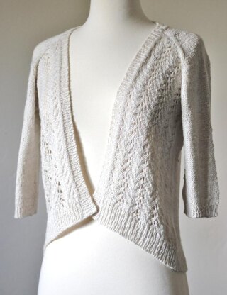 Kawaru is a raglan sleeve cardigan with lace decorating the front panels. Worked from the top down, you can alter length of the sleeves and body to your preference. Kawaru is a perfect cardigan for the changing of the seasons.