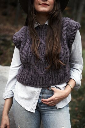 Channel your inner Annie Hall with this classic-made-modern cropped vest. Traditional cables are paired with exaggerated shoulders to freshen up a classic silhouette that’s the perfect topper for a button down or dress.