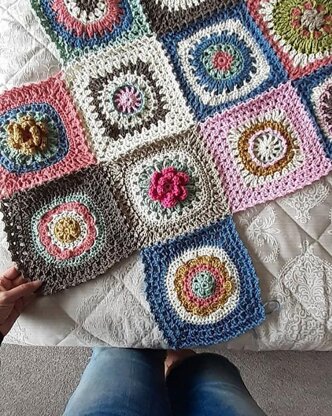 Sample squares were made using DK or light worsted weight yarn and crochet hook size H (5.0 mm). You may use yarn and hook of choice. No yardage info is given since I am just using small amounts of yarn from my stash for this project.