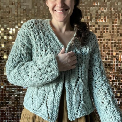 Life can be tough; please don’t give up hope, hang in there and keep dreaming!The Keep Dreaming Cardi was inspired by this sentiment, and my Keep Dreaming Shawl and Cowl patterns. The Body features two different lace motifs and V-neckline shaping. The sleeves feature the same lace pattern as the top of the body and cinch in at the cuff. The boxy, easy fit makes for easy knitting and comfortable layering. Knit up in Flora Adora Fibers naturally dyed chunky weight yarn, this cardigan knits up surprisingly quickly.