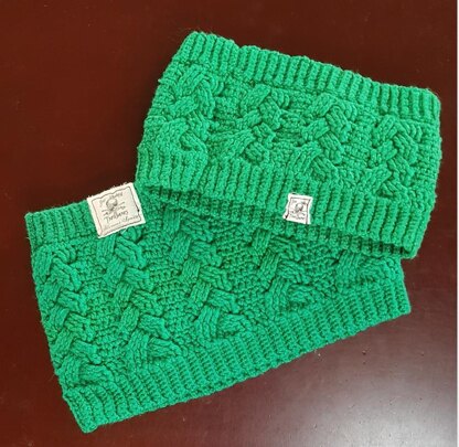 Keep cozy in the cool temps with this cabled cowl and ear warmer! The two pieces come together quickly with an amazing cabled texture. Size can be adjusted to by adding or removing repeats.