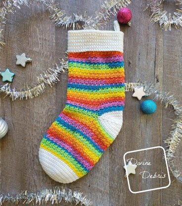 This fun and simple Christmas Stocking pattern is perfect if you’re looking for a pattern to add a bit of Christmas cheer to your home. It works up fast from the toe to the top and you only need 2 colors (unless you’d like more that it). I hope you like it! This pattern is also free on DivineDebris[dot]com.