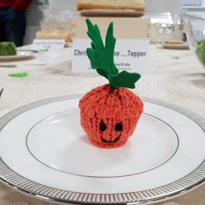 This Carrot person knitting pattern is a chocolate cover for a Ferrero Rocher size chocolate. You can leave it plain or embroider the face using the chart included with the pattern.