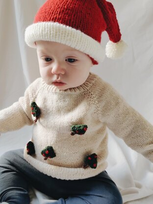 This fun Christmas sweater is knit from the top down with 3D trees knitted seperately and sewn on.