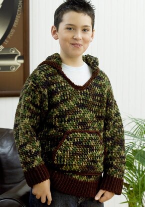 Kid's Hooded Sweatshirt in Red Heart Super Saver Economy Prints - WR1781 is a free Crochet pattern by Red Heart US, available as a Downloadable PDF and includes instructions in English. Super fun to make, this pattern could be your next masterpiece!
