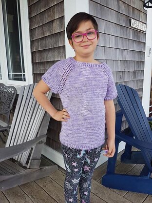 This super cute T-shirt style top works up very beautifully, and it is a great compliment to any wardrobe. It can be worn casual or dress it up! This design has an easy to remember stitch pattern featuring a Unique Twisted V stitch for added texture!