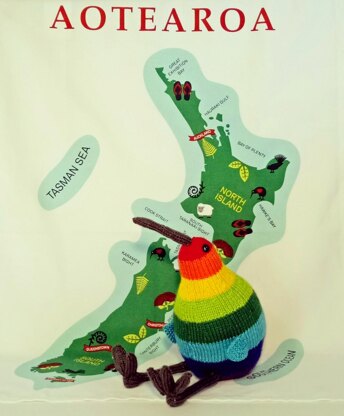 This was my first 'kiwiana' pattern in 2012. I decided this year to add the Rainbow Kiwi - to reflect New Zealand's diversity.