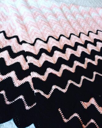 This easy crochet afghan pattern features an easy-to-follow ripple design with a striking gradient-style color change sequence. There are endless color combination possibilities that make this pattern easy to adapt for any decor or gift idea. (There are also notes included on adjusting the length and/or width without losing the symmetry of the striking color change sequence.)