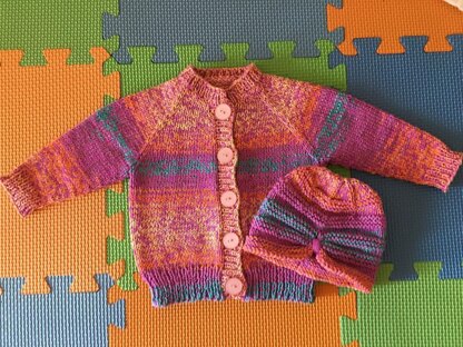 Sweater was made in stockinet stitch from the top down using 2 strands of yarn for an overall thickness of a number 3 yarn. Increases are made at both sides of the sleeves. Sleeves are left to be finished later. I worked the sleeves in the round on a magic loop. button bands and collar are added last.