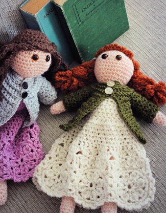 Inspired by the beautiful world of best friends, kindred spirits, bosom buddies…the true treasures of life. Pattern includes instructions for basic doll, hair, dress and cardigan.