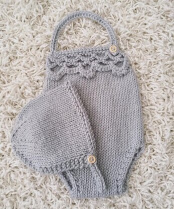 Fits both newborn and 21-22 inch reborn size knit Kingsley Crown romper and bonnet set - Pattern THIS IS NOT THE FINISHED ITEM
