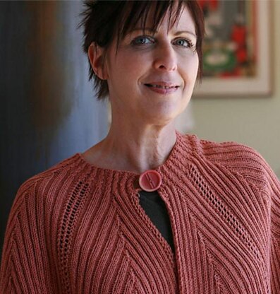 Inspired by an 1870's counterpane pattern, this nearly-circular wrap combines tailored details with a feminine sensibility. Rise to the challenge of the initial cast-on and you'll be rewarded with an easy decreasing rib pattern that simultaneously eliminates stitches and the need for seaming. The interplay of delicate eyelets and bold angular ribbed decreases add drama to the clean lines of this go-anywhere piece.
