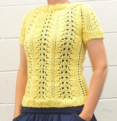 This is given as a recipe. Choose your yarn (I suggest a bulky cotton) and needles. Swatch. And just follow the recipe for a perfect fitting cool lacey summer top.
