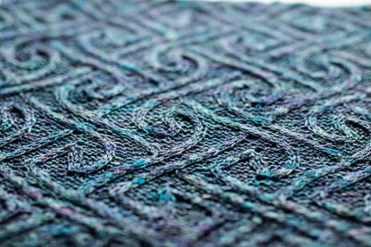 The all-over cable pattern is inspired by Pictish artwork and explores the relationship between key patterns and spirals - slowly morphing from one to the other, and then back again.