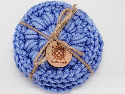 If you do not have access to the recomended yarn, you can absolutely combine your favorite absorbant yarn and scrubby yarn together to get the same effect. Worked from the center beginning with a magic circle then out 3 rounds. I give instructions for the more difficult stitches. They can be used anywhere, not just the kitchen!