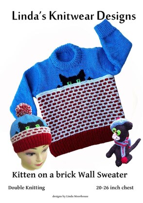 **Materials:**100g-100g-100g-150g ofStylecraft Life double knitting in blue.50g (100g for 26 inch size) of brick red & 50g cream for wall and oddments for the motif
