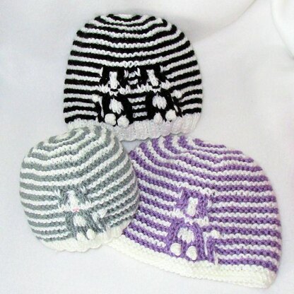 Fun Garter Stripes with slipped stitches make these darling Kitties! Only one color is used at a time - so you get the look of fair isle without needing to carry 2 yarns! Patterns are line-by-line instructions; no chart reading necessary.