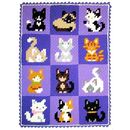 This darling Kitty Corner Afghan features 12 Favorite Felines!