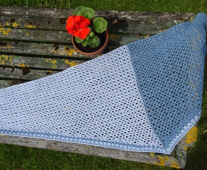 Kitty is a sideways triangular shawl design using either 2 different colours of yarn or one skein of variegated yarn.