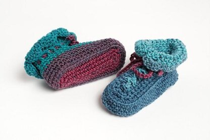 Baby booties make quick and fun projects - and great gifts. These booties feature an interesting zigzag seam on the top and a shell border. The pattern includes photo tutorials for working into both sides of a chain and for the seam.