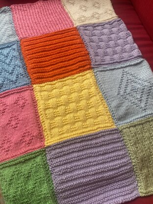 This is a fun addition to my patchwork blanket collection. These squares are made up of only knit and purl stitches.