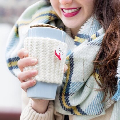If you know the very basics of knitting (cast on, knit, bind off), you can make this warm, soft and really cozy Chunky Knit Coffee Sleeve for yourself, your family members, or as a wonderful gift. They make lovely stocking stuffers!